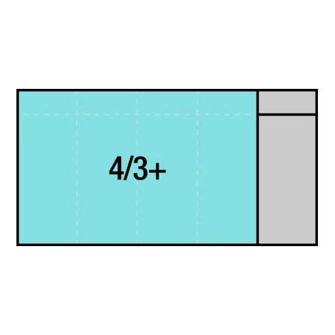 - Taille système de rangement: 4/3+ (691 x 392 mm)